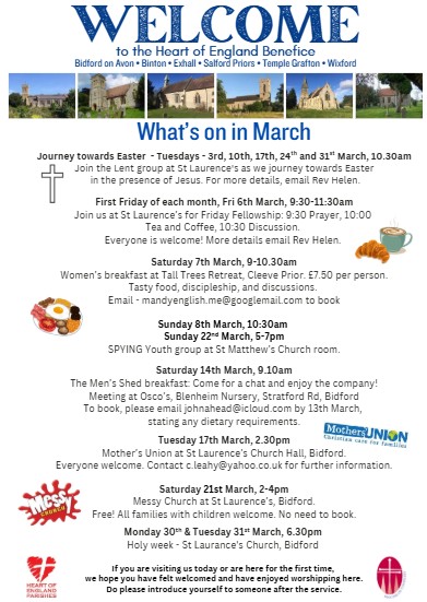 Join the Lent group at St Laurence's Church, as we journey towards Easter in the presence of Jesus. For more details, email Rev Helen. Everyone welcome!
