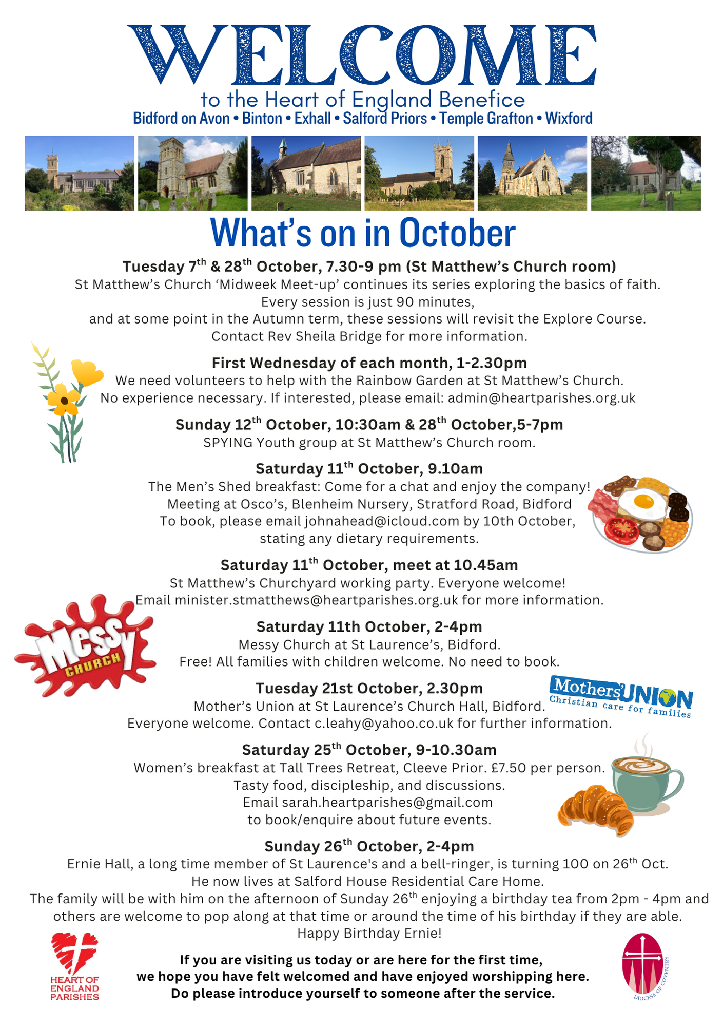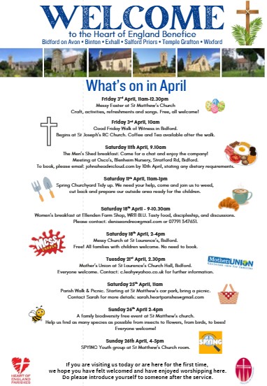 St Matthew's is part of the Heart of England group of churches which includes Bidford on Avon, Binton, Exhall, Temple Grafton and Wixford. At present there is a vacancy for a Rector who is the incumbent for all our 6 Churches.
